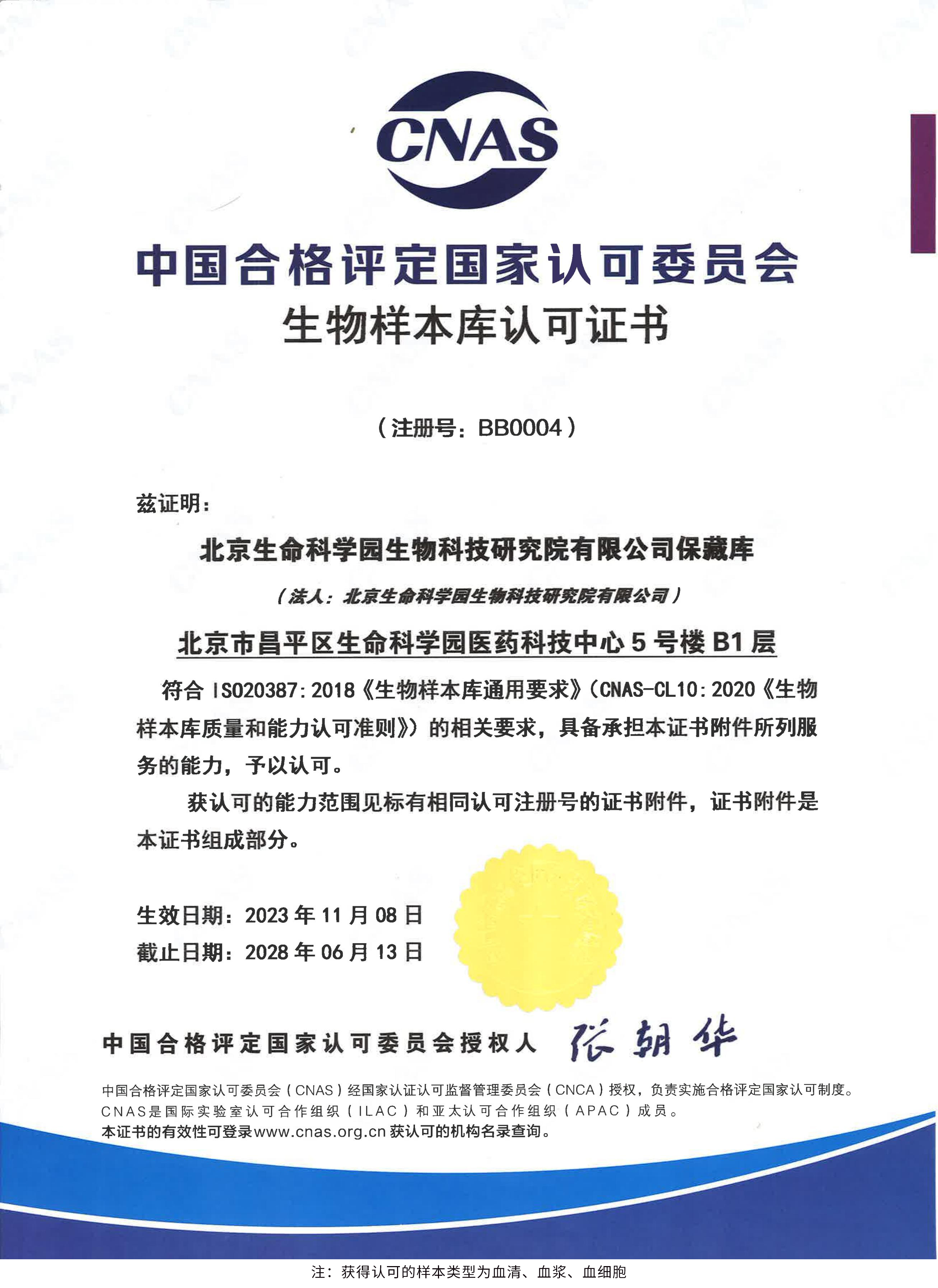 北京生命科學(xué)園生物科技研究院(以下簡稱“北京生物樣本資源庫”)(Biobank of Life Science Park,簡寫“BoLSP”)是一家由北京市科委和中關(guān)村生命科學(xué)園共同支持設(shè)立的第三方生物樣本庫公共服務(wù)平臺,秉承北京重大疾病臨床數(shù)據(jù)和樣本資源庫(以下簡稱“北京庫”)(Beijing Biobank of Clinical Resources,BBCR)十余年的發(fā)展成果,聚合眾多臨床樣本專家的專業(yè)共識,致力于在生命科學(xué)、生物醫(yī)藥研究領(lǐng)域發(fā)揮銜接樣本資源持有者與研究者的橋梁作用,解決生物樣本資源開發(fā)上下游信息不對稱、資源共享困難等問題。研究院在北京中關(guān)村生命科學(xué)園昌平園區(qū)建立了2000㎡生物樣本庫,最大存儲規(guī)模達(dá)1000萬份。研究院遵循CNAS-CL10:2020《生物樣本庫質(zhì)量和能力認(rèn)可準(zhǔn)則》,同時結(jié)合北京庫過去十年的工作經(jīng)驗(yàn)與教訓(xùn),建立了一套完善的生物樣本保藏質(zhì)量管理體系,從人、機(jī)、料、法、環(huán)、控多個角度,實(shí)現(xiàn)生物樣本保藏過程的全面質(zhì)量控制,先后獲得國家科技部頒發(fā)的人類遺傳資源保藏行政許可證書和中國合格評定國家認(rèn)可委員會(China National Accreditation Service for Conformity Assessment,CNAS)頒發(fā)的“CNAS認(rèn)可證書”。